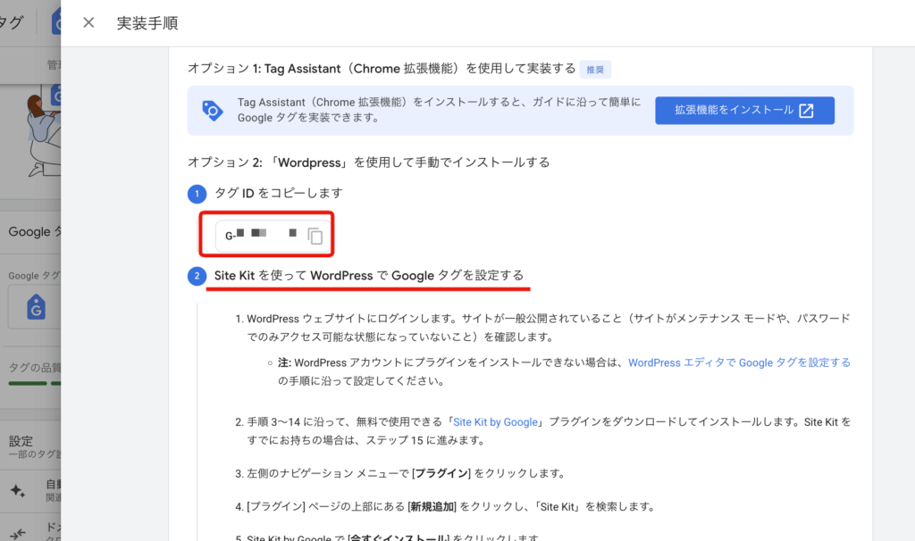 Site Kit by Googleを使えば、簡単にこのIDをコピーしてプラグインに設定するだけで設置することが可能となります。